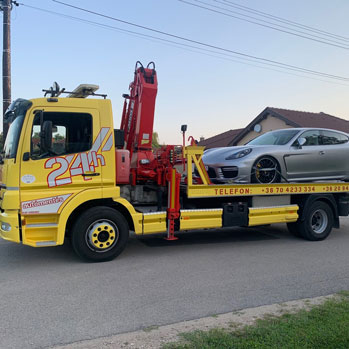 Sérült gépkocsi szállítása és mentése éjjel vagy nappal is!