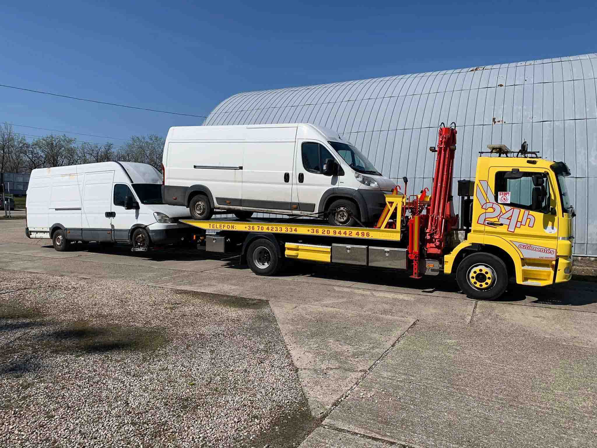 Sérült gépkocsi szállítása és mentése éjjel vagy nappal is!